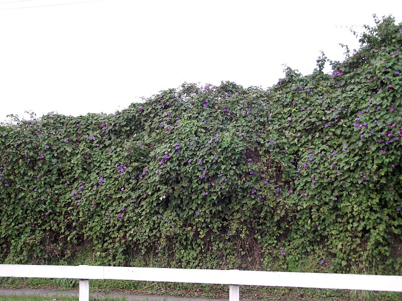 Climbs over all other species, ultimately killing them. Can replace forest with low weedy blanket, and is the last species in many cases when a bush area totally succumbs to weeds.