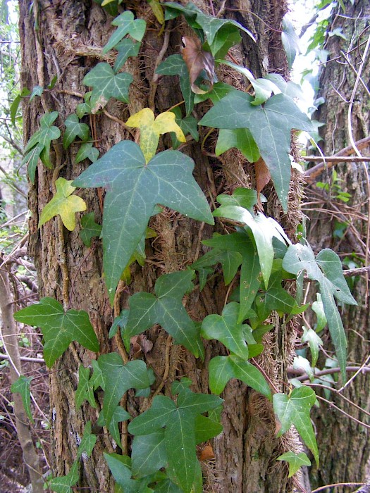 Stumps resprout and cut stems root at nodes. Many plants do not produce viable (or any) seed, but once established, ivy is hard to kill and dispose of. In damp areas growth on trees can survive for long periods after stump cut. However in most cases the vine dies, although slowly. For aerial growth on trees in wet areas, remove large stems gradually after cutting stump to minimise shock to host trees. In all other cases, leave stems to die on the tree. Always dry and burn or deep bury all cut stems or take them to a refuse transfer station.