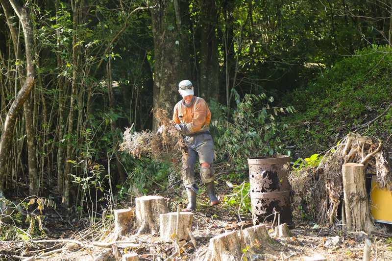 - Prevent re-growth: All the cut stumps were pasted with herbicide to prevent them sprouting again, but their roots remain in the ground to stabilise the soil.